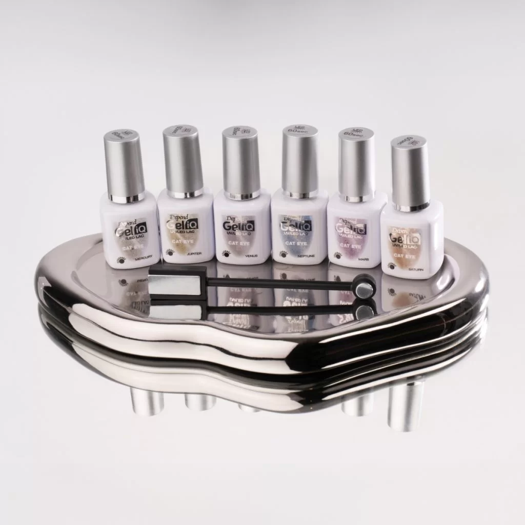Med Cat Eye giver du dine negle en magisk dybde. Brug magneten og se mønstre og farveskift tage form. Leg med forskellige farvede Gel iQ-nuancer som base, og oplev hvordan lys og vinkel forvandler effekten til noget helt unikt.