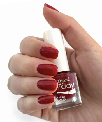 7day er laksystemet til dig, der søger en neglelak med superglans, ekstrem god holdbarhed og ”gel feeling”. Denne hybridformulering holder i op til en uge, er let at påføre, og du tager nemt lakken af med Depend neglelakfjerner. Laksystemet hærder i normal dags-/ lampelys. Depend 7day lak har symboler på flasken så du ved, hvor godt lakken dækker; dækkende, halvdækkende eller transparent.