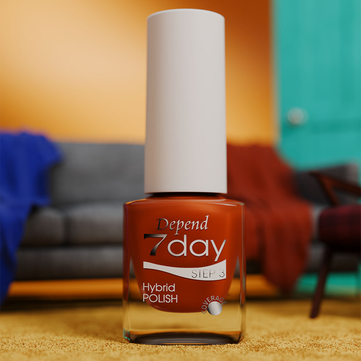 7day er laksystemet til dig, der søger en neglelak med superglans, ekstrem god holdbarhed og ”gel feeling”. Denne hybridformulering holder i op til en uge, er let at påføre, og du tager nemt lakken af med Depend neglelakfjerner. Laksystemet hærder i normal dags-/ lampelys. Depend 7day lak har symboler på flasken så du ved, hvor godt lakken dækker; dækkende, halvdækkende eller transparent.