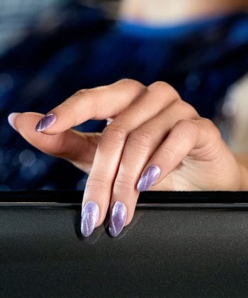 Brug dit valg af magnet til at skabe Cat Eye-effekten. Hold magneten så tæt på neglen som muligt uden at berøre lakken. Når du er tilfreds med resultatet, så hærd i 60 sekunder i UV/LED-lampen. For at hærde i 60 sekunder trykker du først 1 gang på 30 sek.-knappen, og når lampen slukker, trykker du 1 gang til på 30 sek.-knappen, inden du går videre med næste finger. Hvis du ikke er tilfreds med mønsteret, kan du stryge lakken ud igen med en afstrøget pensel og påbegynde et nyt design med magneten. OBS! Dette skal da gøres, før lakken hærdes i UV/LED-lampen. Magneten rengøres nemt med Pre-Cleanser på en pad.