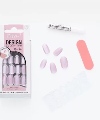 Kunstige negle tages af med Depend negle-remover. OBS! Du må aldrig brække eller hive de kunstige negle af, da det kan skade dine naturlige negle