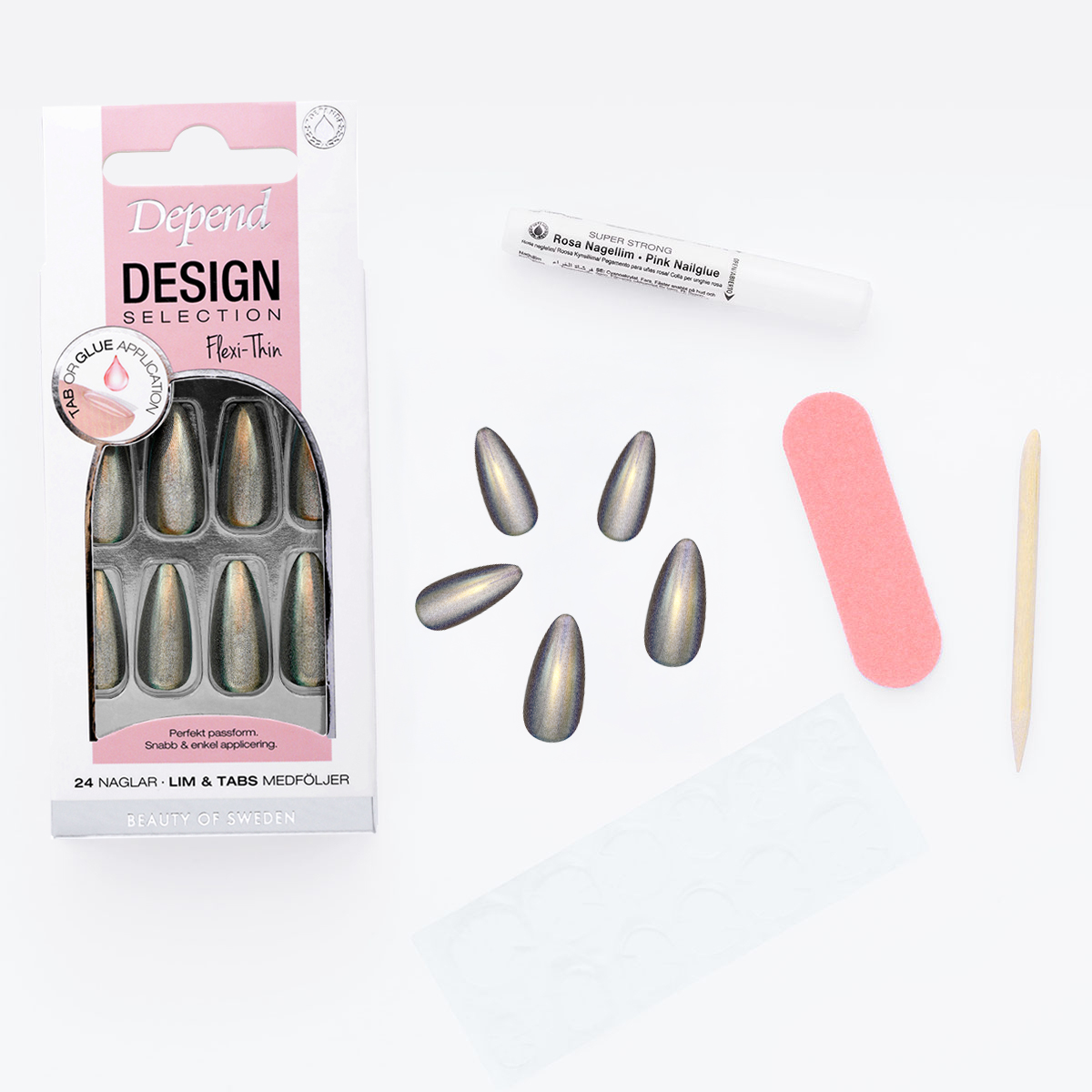 OBS! Vi anbefaler, at kunstige negle maksimalt sidder på 10 dage i træk. Herefter skal neglene have luft, før du kan sætte kunstige negle på igen, forudsat at dine negles tilstand er god. Kunstige negle tages af med Depend negle-remover. OBS! Du må aldrig brække eller hive de kunstige negle af, da det kan skade dine naturlige negle.