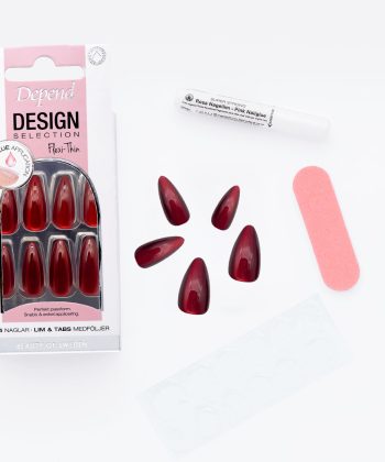 Kunstige negle tages af med Depend negle-remover. OBS! Du må aldrig brække eller hive de kunstige negle af, da det kan skade dine naturlige negle