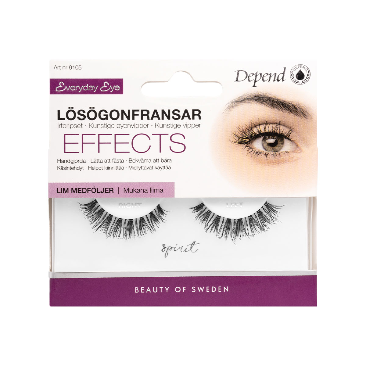 Håndlavede · Nemme at sætte fast · Bekvemme at bære. Intensiver din makeup med et par kvalitetsvipper, der gør, at dit look holder hele dagen og aftenen. Spirit – Lang, fyldig vippe til både naturligt og festligt look. Håndlavede af naturligt hår (ikke fra dyr), som er særligt udvalgt for absolut bedste kvalitet. Vippen har en fleksibel, tynd hæfteflade, er fjerlet og giver en naturlig følelse med maksimal komfort. Kan bruges flere gange. Latexfri, langtidsholdbar lim medfølger i pakningen. Der findes en udførlig brugsanvisning i pakningen.