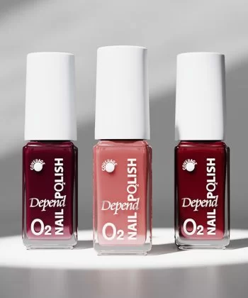 Depend O2 minilak har en perfekt størrelse på 5 ml og en patenteret formula som giver bedre ilt til neglen. Er let at påføre på neglene med den specialdesignet pensel. Du kan vælge dækkeevne ud fra symbolerne på flasken, som viser lakkens dækkeevne. Depend minilak er svenskfremstillet og på forkant, når det gælder valg af råvarer. En rigtig klassiker; lille, trendy og så prisvenlig at du kan unde dig selv en for hvert outfit i garderoben. Kollektionerne opdateres hele tiden I sæsonens farver og fås i over 50 lande.