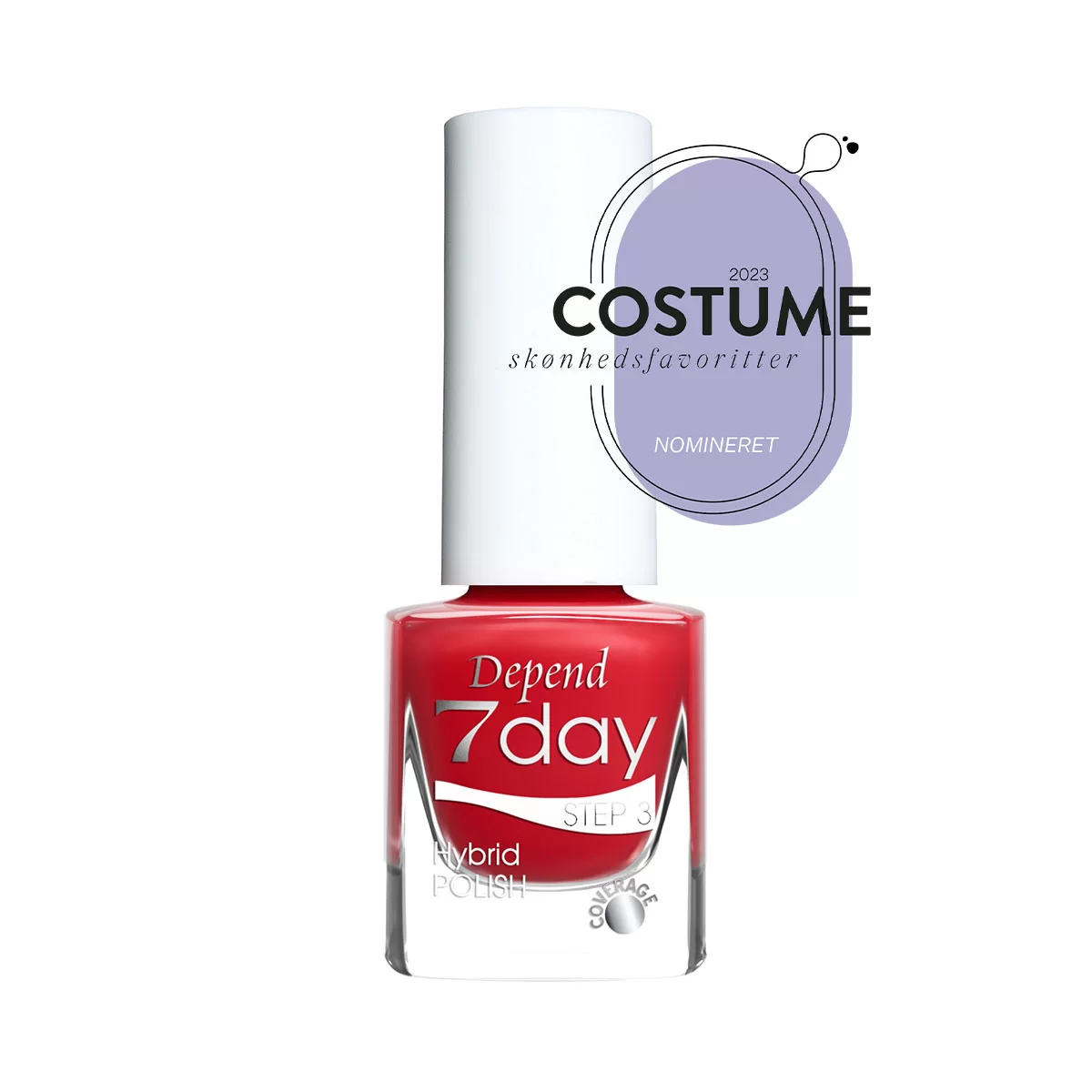 7day er laksystemet til dig, der søger en neglelak med superglans, ekstrem god holdbarhed og ”gel feeling”. Denne hybridformulering holder i op til en uge, er let at påføre, og du tager nemt lakken af med Depend neglelakfjerner. Laksystemet hærder i normal dags-/ lampelys. Depend 7day lak har symboler på flasken så du ved, hvor godt lakken dækker; dækkende, halvdækkende eller transparent.