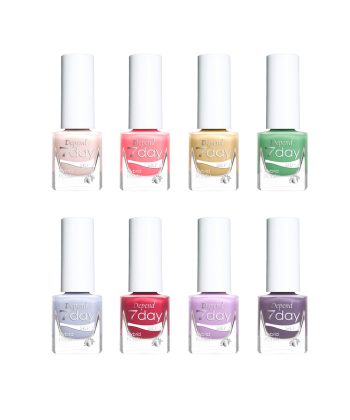 7day er laksystemet til dig, der søger en neglelak med superglans, ekstrem god holdbarhed og ”gel feeling”. Denne hybridformulering holder i op til en uge, er let at påføre, og du tager nemt lakken af med Depend neglelakfjerner. Laksystemet hærder i normal dags-/ lampelys. Depend 7day lak har symboler på flasken så du ved, hvor godt lakken dækker; dækkende, halvdækkende eller transparent.