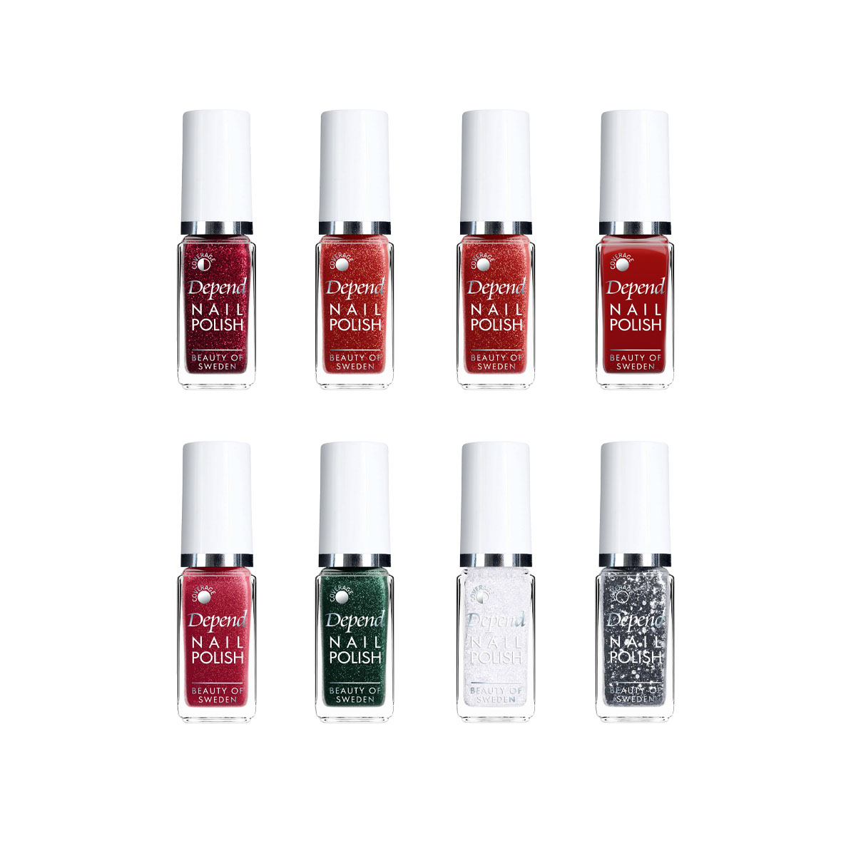Depend minilak har en perfekt størrelse på 5 ml og er let at påføre på neglene med den specialdesignet pensel. Du kan vælge dækkeevne ud fra symbolerne på flasken, som viser lakkens dækkeevne. Depend minilak er svenskfremstillet og på forkant, når det gælder valg af råvarer. En rigtig klassiker; lille, trendy og så prisvenlig at du kan unde dig selv en for hvert outfit i garderoben. Kollektionerne opdateres hele tiden I sæsonens farver og fås i over 50 lande.