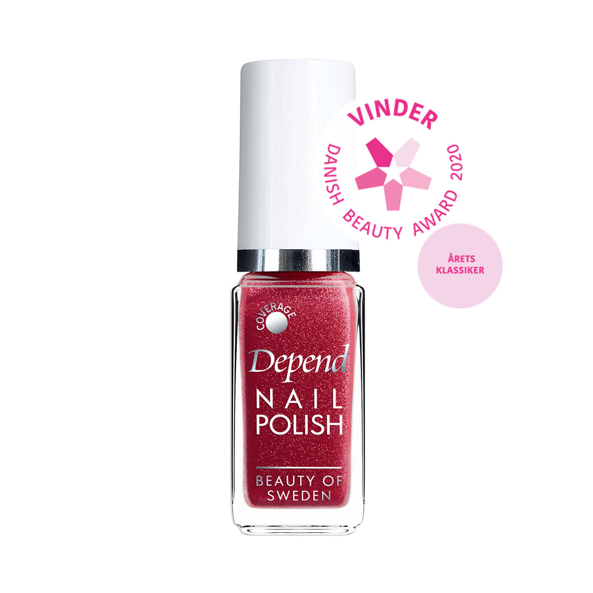 Depend minilak har en perfekt størrelse på 5 ml og er let at påføre på neglene med den specialdesignet pensel. Du kan vælge dækkeevne ud fra symbolerne på flasken, som viser lakkens dækkeevne. Depend minilak er svenskfremstillet og på forkant, når det gælder valg af råvarer. En rigtig klassiker; lille, trendy og så prisvenlig at du kan unde dig selv en for hvert outfit i garderoben. Kollektionerne opdateres hele tiden I sæsonens farver og fås i over 50 lande.