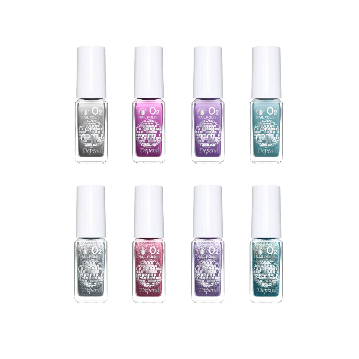 Depend O2 minilak har en perfekt størrelse på 5 ml og en patenteret formula som giver bedre ilt til neglen. Er let at påføre på neglene med den specialdesignet pensel. Du kan vælge dækkeevne ud fra symbolerne på flasken, som viser lakkens dækkeevne. Depend minilak er svenskfremstillet og på forkant, når det gælder valg af råvarer. En rigtig klassiker; lille, trendy og så prisvenlig at du kan unde dig selv en for hvert outfit i garderoben. Kollektionerne opdateres hele tiden I sæsonens farver og fås i over 50 lande.