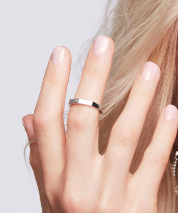 3. Tryk med 2 fingre på pad’en, så du får et jævnt tryk på hele neglens flade. Træk herefter fra neglebåndet og op mod neglespidsen i ét fast træk.
