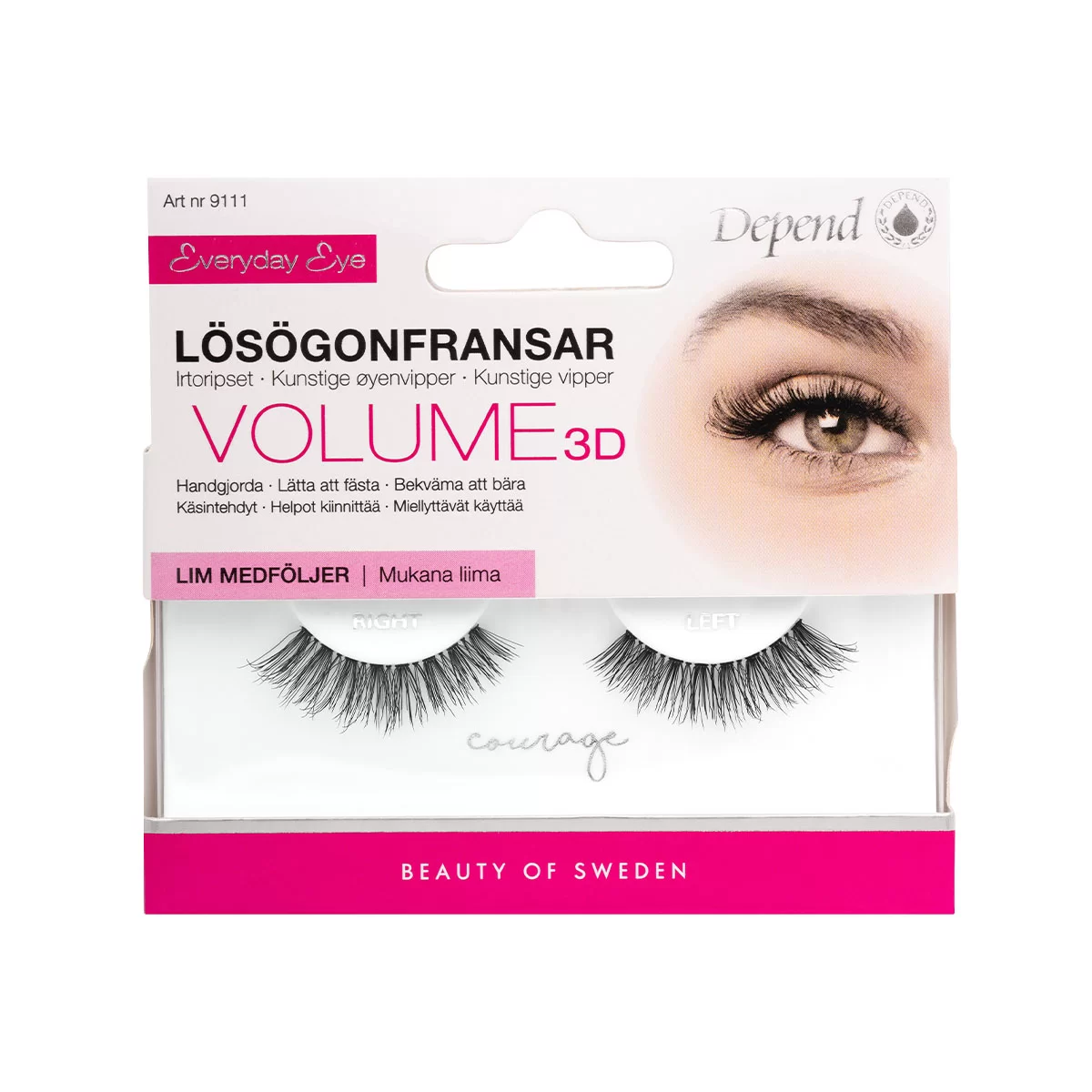 Håndlavede · Nemme at sætte fast · Bekvemme at bære. Intensiver din makeup med et par kvalitetsvipper, der gør, at dit look holder hele dagen og aftenen. Courage – Fyldig volumenvippe i kortere model med 3D effekt. Håndlavede af syntetisk hår, som er særligt udvalgt for absolut bedste kvalitet. Vippen har en fleksibel, tynd hæfteflade, er fjerlet og giver en naturlig følelse med maksimal komfort. Kan bruges flere gange. Latexfri, langtidsholdbar lim medfølger i pakningen. Der findes en udførlig brugsanvisning i pakningen.
