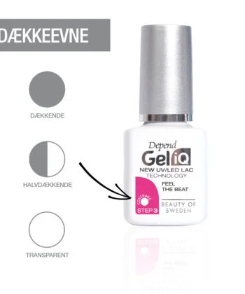Ny gelformel med høj iQ. Gel polish som hærdes under UV/LED lampe og som med 5 enkle trin giver et superglansfuldt resultat med en fylde, der adskiller sig fra en almindelig neglelak. Du behøver ikke at klargøre din naturlige negl med filning eller behandle med stærk primer. Gel iQ behøver kun let rengøring med en mild Pre-Cleanser, inden du udfører din lakbehandling. UV/LED-lampen er specialudviklet med en hærdetid på 30 sekunder for hvert påføringstrin. Symbiosen mellem lampe og lak giver en selvudjævning, hvor eventuelle rande forsvinder under hærdningen, selvom du ikke har lakeret helt jævnt.