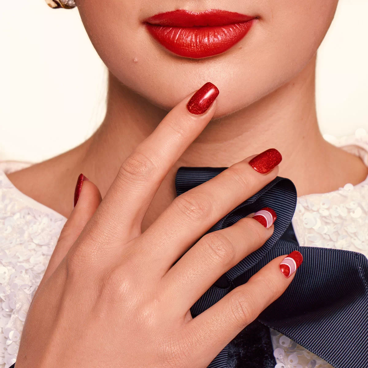 Embrace the magic of winter with a stunning selection of red shades and elegant gold. Perfect for festive celebrations!