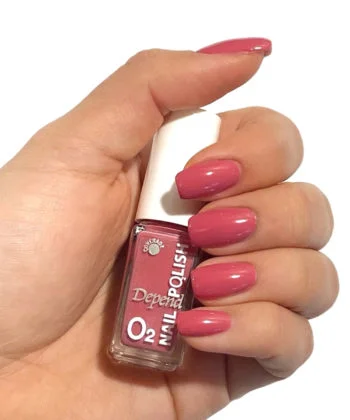 Depend O2 minilak har en perfekt størrelse på 5 ml og en patenteret formula som giver bedre ilt til neglen. Er let at påføre på neglene med den specialdesignet pensel. Du kan vælge dækkeevne ud fra symbolerne på flasken, som viser lakkens dækkeevne. Depend minilak er svenskfremstillet og på forkant, når det gælder valg af råvarer. En rigtig klassiker; lille, trendy og så prisvenlig at du kan unde dig selv en for hvert outfit i garderoben. Kollektionerne opdateres hele tiden I sæsonens farver og fås i over 50 lande.