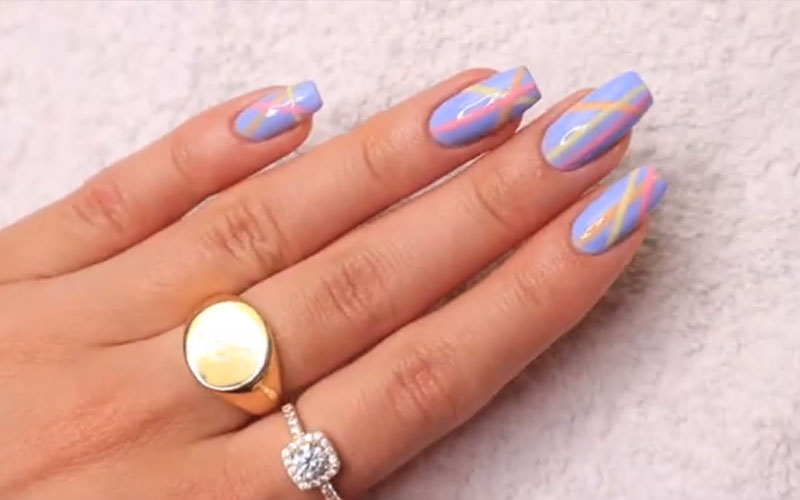 Skab flotte mønstre med striber ved hjælp af stribe-tape. Let at anvende på både lakerede negle og kunstn...